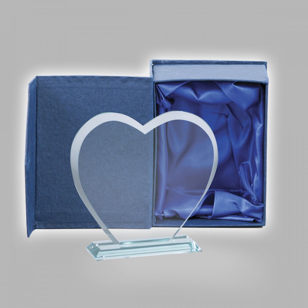 Gravírozható szív üvegplakett kék díszdobozzal bruttó 21900 Ft